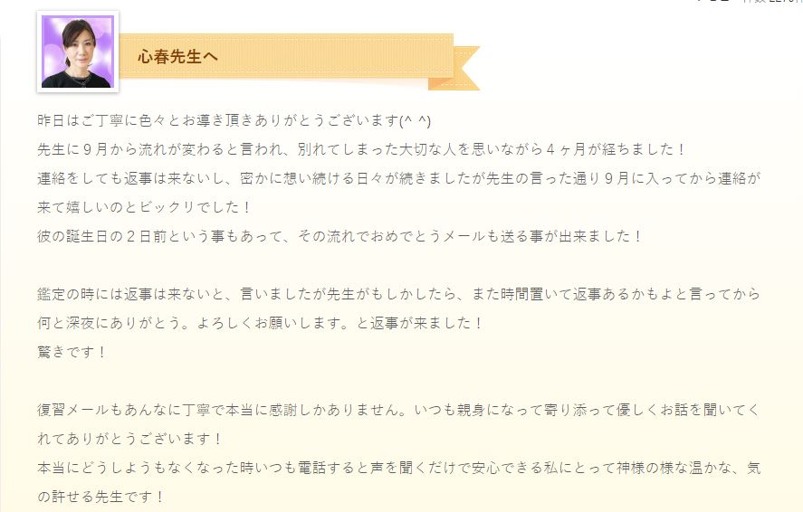 Yちゃんには、一度心春先生の鑑定をおすすめしようと思います。